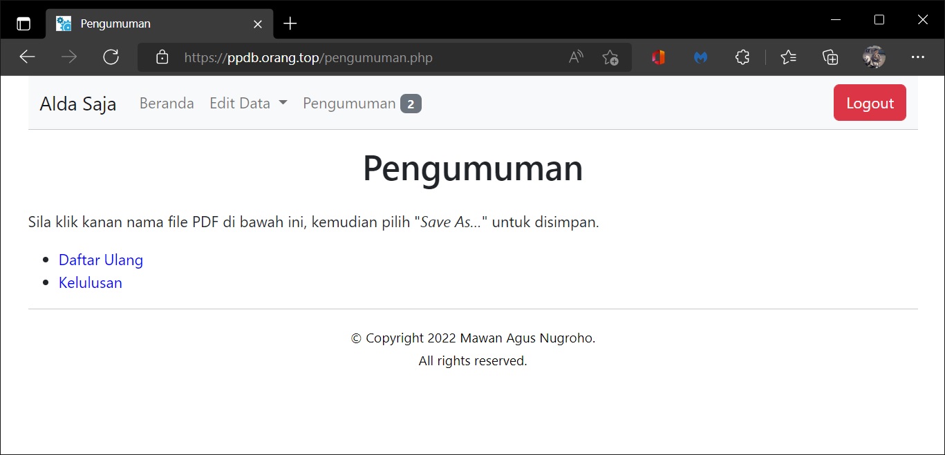 Harus dipahami bahwa cara ini membuat aplikasi PPDB anda menjadi stand alone dan